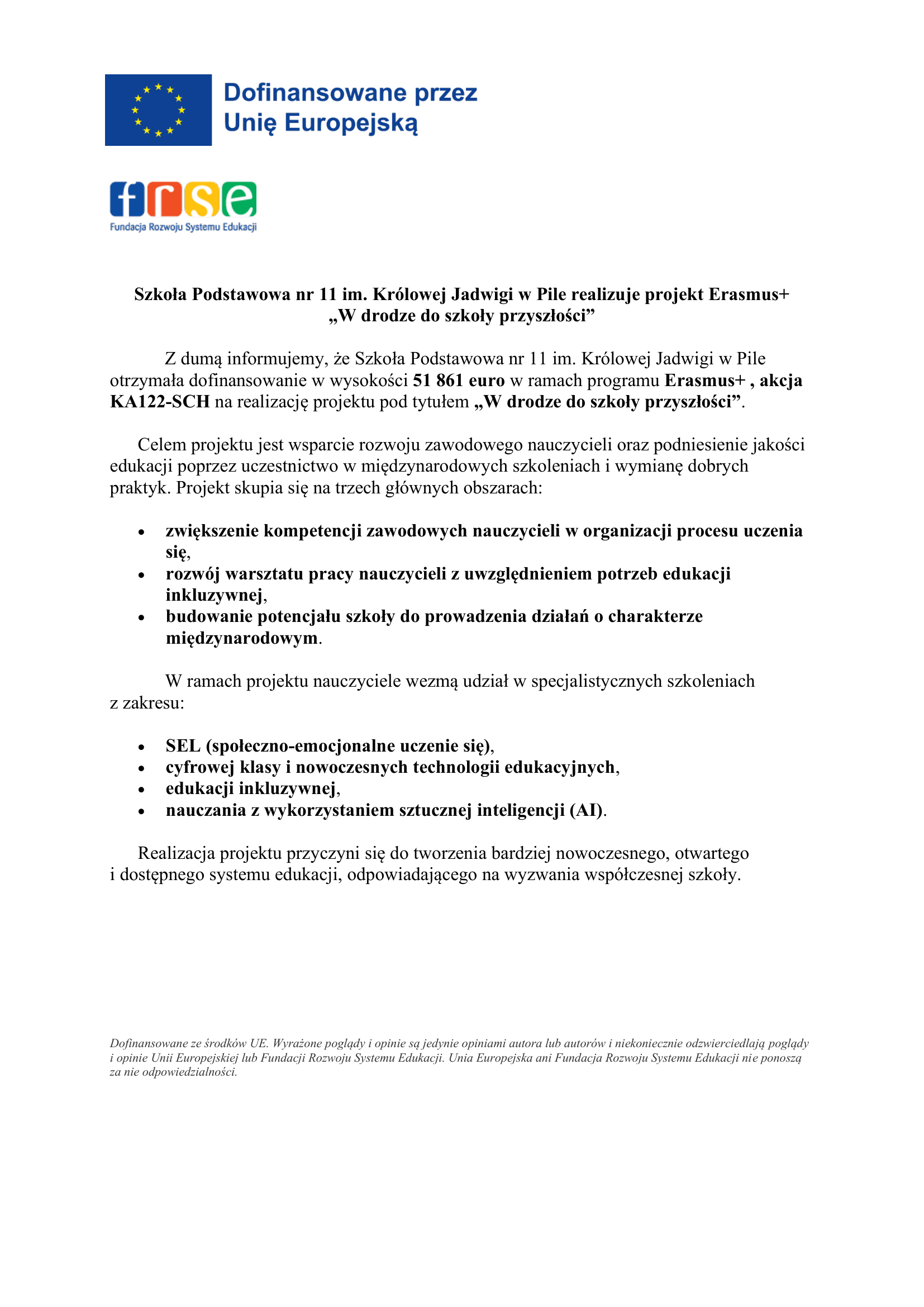 Projekt Erasmus+ „W drodze do szkoły przyszłości”